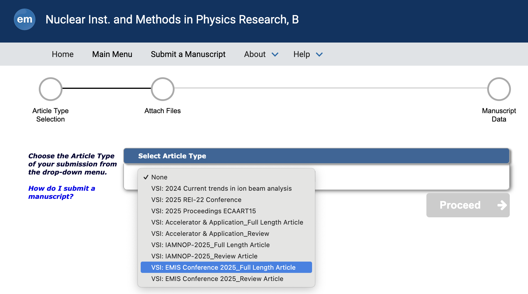 - To ensure that all manuscripts are correctly identified for inclusion into the special issue, it is important that authors select "VSI: EMIS Conference 2025_Full Length Article or VSI: EMIS Conference 2025_Review Article" when reaching the "Article Type" step in the submission process: